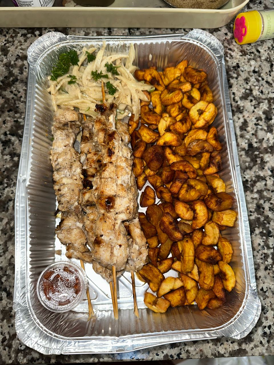 Il y a des BRICKS, des BROCHETTES, des TACOS, du POULET braisé, des gâteaux, et notre délicieux TIRAMISU.